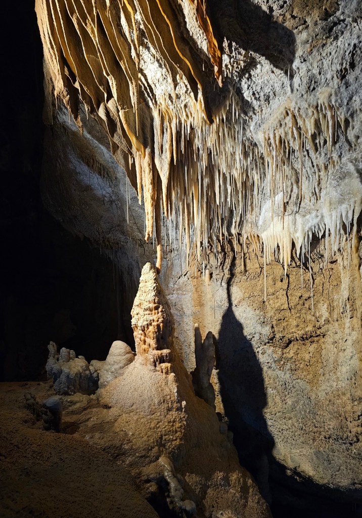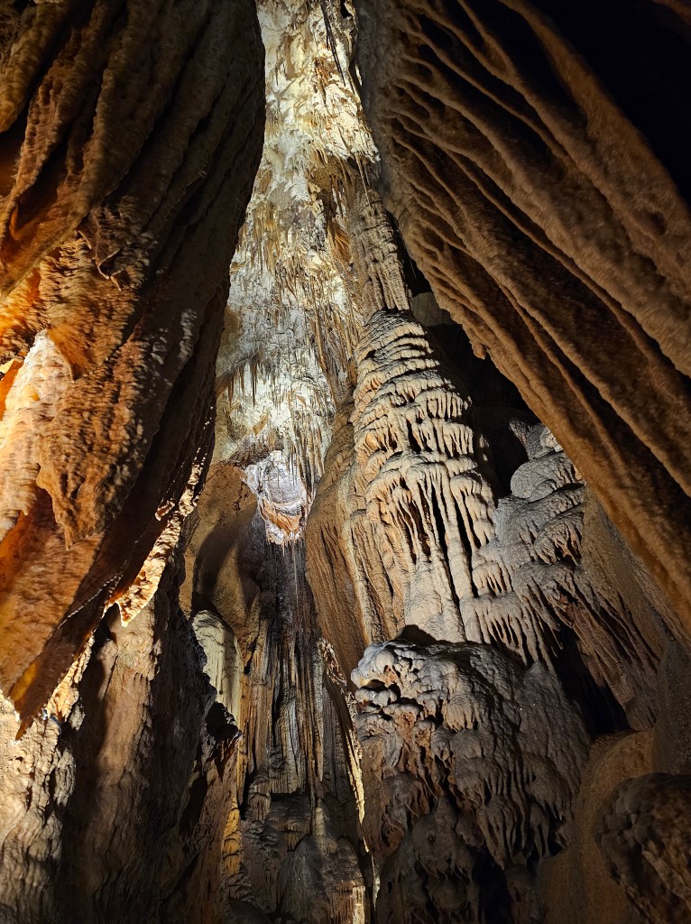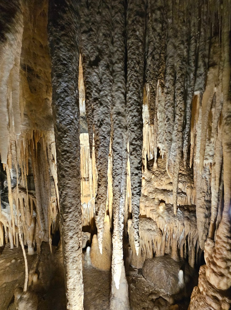 Caves always fascinate me. They appear to be made of plastic. My brain looks at all the intricate shapes and smooth, shiny surfaces and cannot fathom the sheer time that it has taken for each of them to form. Some of them immense and some as fine and delicate as drinking straws (interestingly, that is what those are called- straws). Some are hanging (stalactites), striving to make contact with the ground below, others pushing upwards (stalactmites) vying to contact the ceiling.