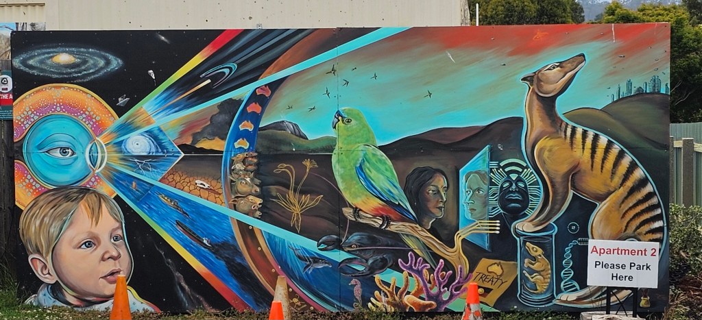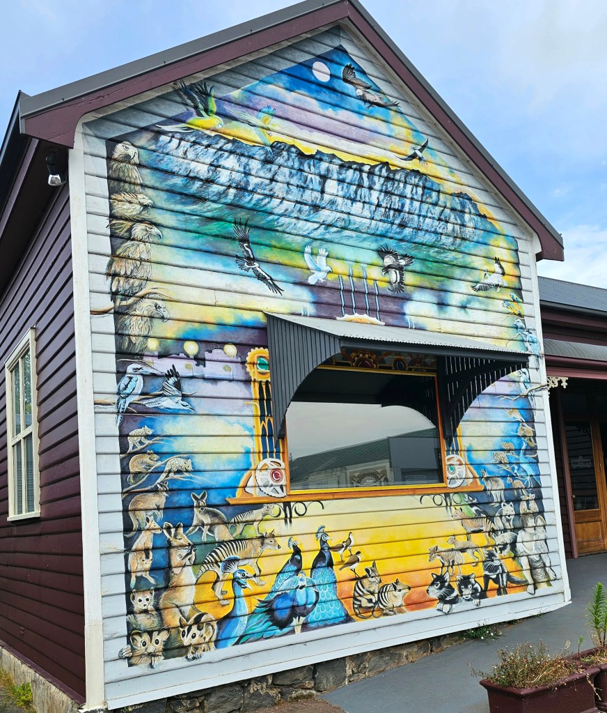 There are a lot of murals. It started out as an idea to reinvigorate the town through tourism. The first mural was completed in 1986. It just grew from there, I guess, to a point where almost every possible vertical surface has something painted on it. Some are three dimensional, where they have incorporated unused awnings and doorways into the murals. Some are on building walls, some on frontages and others are just on walls that seem to have been purpose built. Even a couple of little alleyway walls have little murals on them.