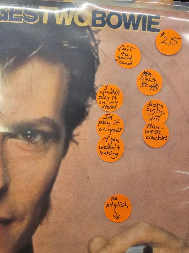 Most notably, hundreds and hundreds of vinyl records. You could spend days in there and not see them all. And multiples of some. Some in mint condition. Incredible music in this tiny little shop in Tasmania. Every one of these hundreds of records had stickers on them telling of their condition and other funny lil messages.