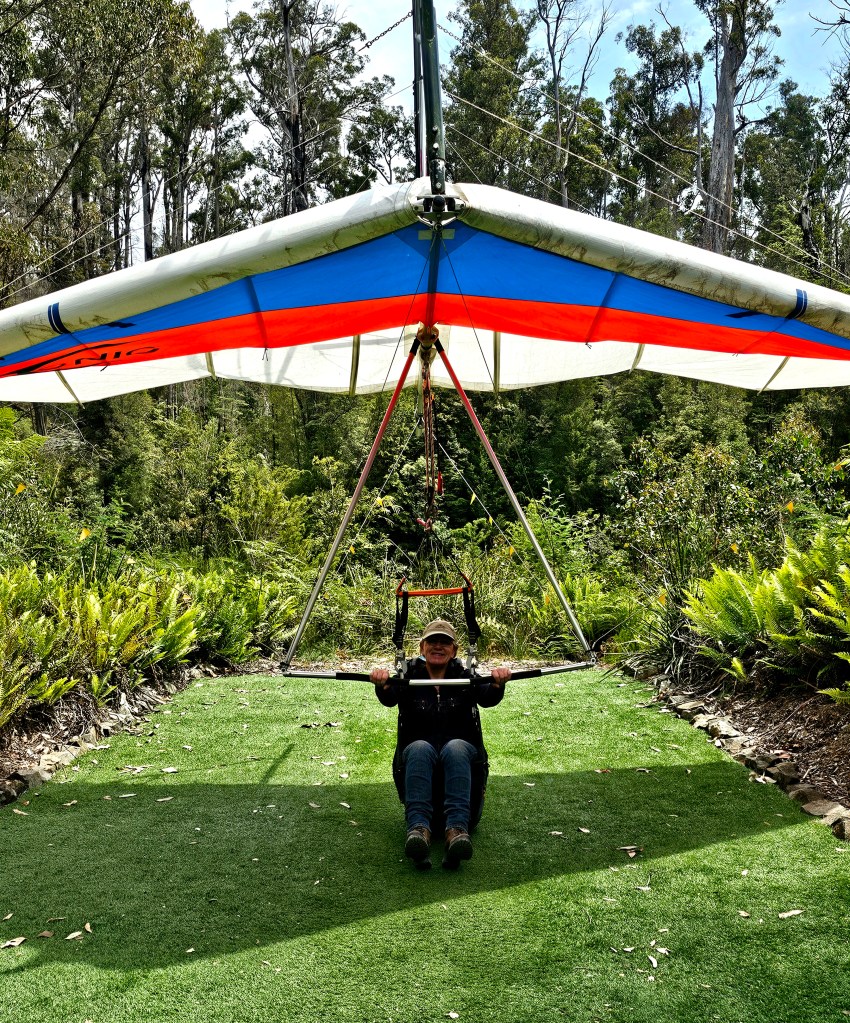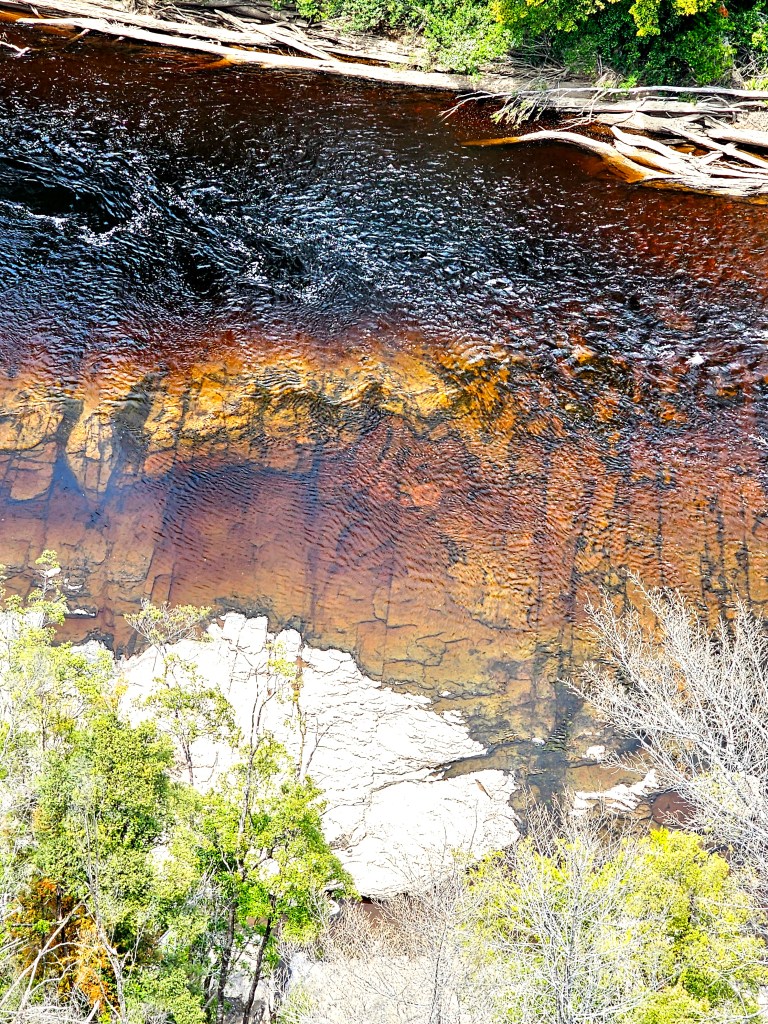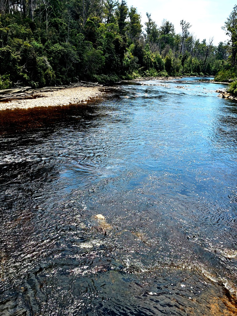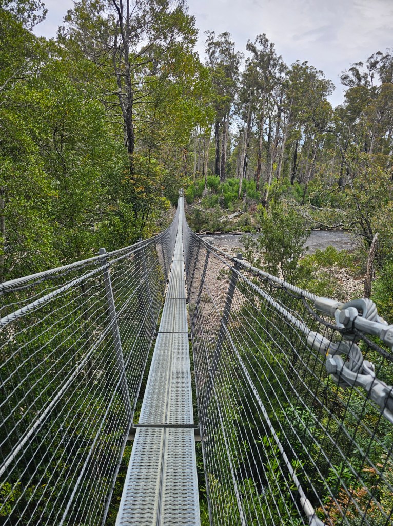 This was a fun experience, zipping 50 metres above the espresso coloured Huon River, looking across the fire ravaged forest below.