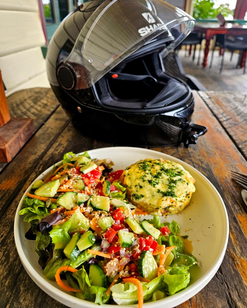 Then the light went green. This light was literally about 15 metres from a hairpin bend. And, to add salt to an already salty wound, they had removed the entire surface of the road for about 4 kms. So, imagine, riding around a hairpin bend, in rutted, wet mud and gravel. And then, another 4 kilometres of slippery, corrugated, gravelly muck. I am not sure what I yelled (inside my helmet, of course) at the guy in the water truck (!) who was gleefully spraying the already sodden road as I went past. I especially enjoyed that extra hosing down from his truck, it really added to my comfort levels.