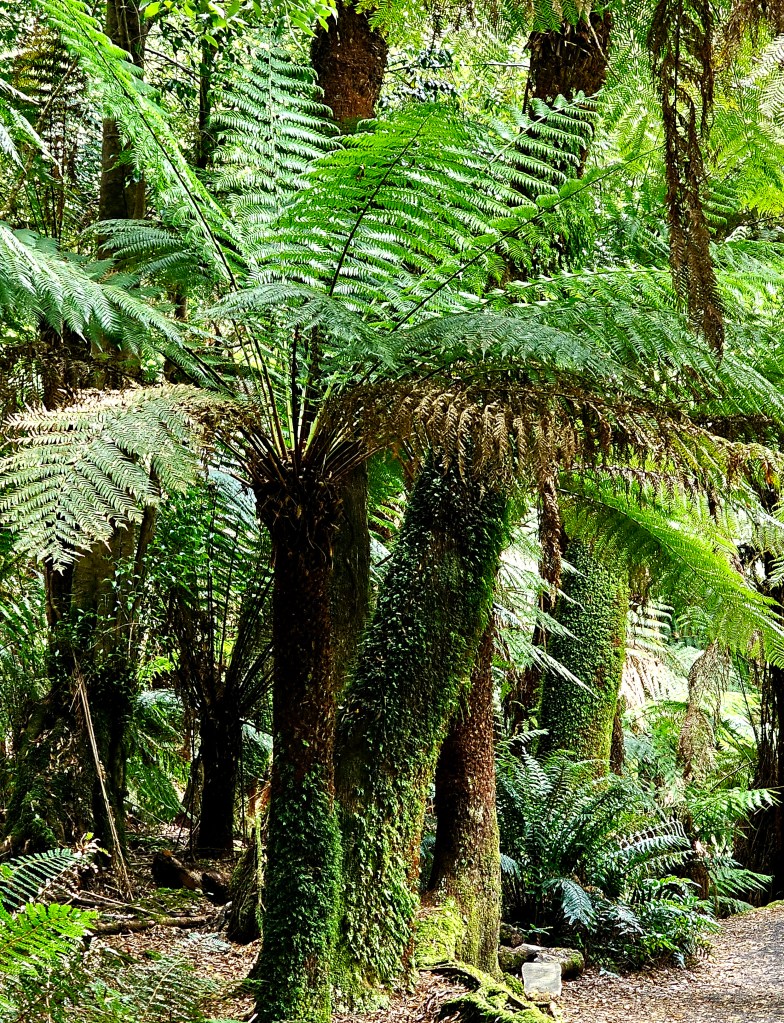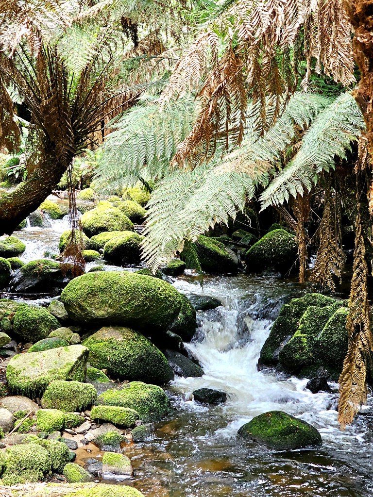Had a really pleasant ride to St Columba Falls. One of the tallest falls in Tasmania at 90 metres tall, you could hear them long before they came into view. A 15 minute walk through the most magical fern gully imaginable. The greenest of green, moss and lichen covered rocks and logs with and towering tree ferns. I have never seen such enormous tree ferns. Taller, even, than some of the sassafras and myrtle trees that they shared space with.